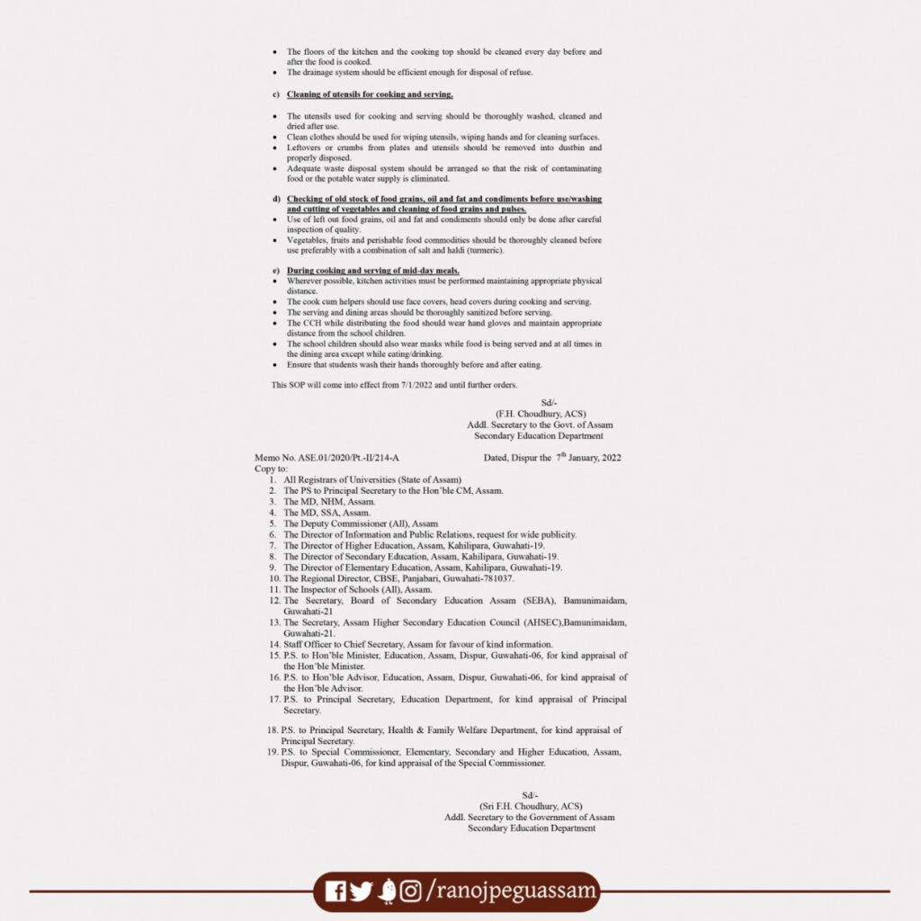 সকলো শিক্ষা প্ৰতিষ্ঠানে অনলাইন মাধ্যমেৰে পাঠদান কাৰ্যসূচী অব্যাহত ৰাখিব পাৰিব। লগতে শিক্ষানুষ্ঠানসমূহত সপ্তাহত এবাৰকৈ চেনিটাইজ কৰাটো বাধ্যতামূলক। তাৰোপৰি ক’ভিড প্ৰট’কল মানি যেনে-মাস্ক পৰিধান কৰা, সামাজিক দূৰত্ব মানি চলা আদি বাধ্যতামূলক।