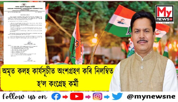 2 Congress leaders suspended for taking part in Amrit Kalash Yatra : অমৃত কলহ কাৰ্যসূচীত অংশগ্ৰহণ কৰি নিলম্বিত হ’ল কংগ্ৰেছ কৰ্মী