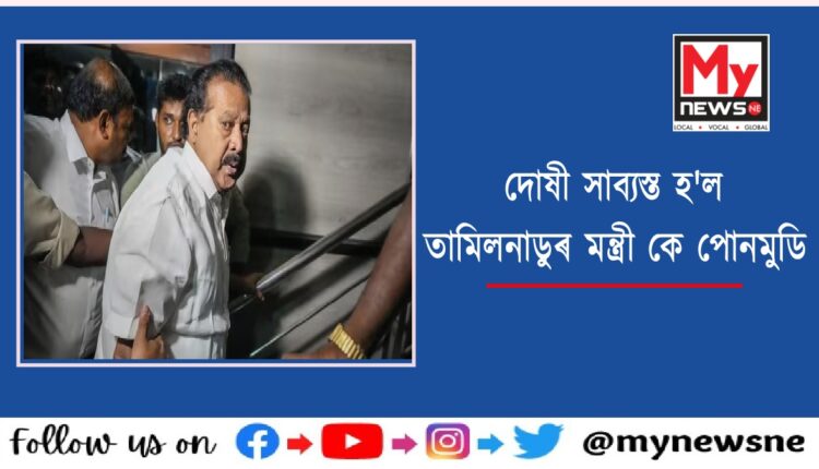 3 Year Jail For Senior Tamil Nadu Minister In Corruption Case : দুৰ্নীতিৰ গোচৰত দোষী সাব্যস্ত তামিলনাডুৰ মন্ত্ৰী কে পোনমুডি ;তিনি বছৰৰ কাৰাদণ্ড প্ৰদান