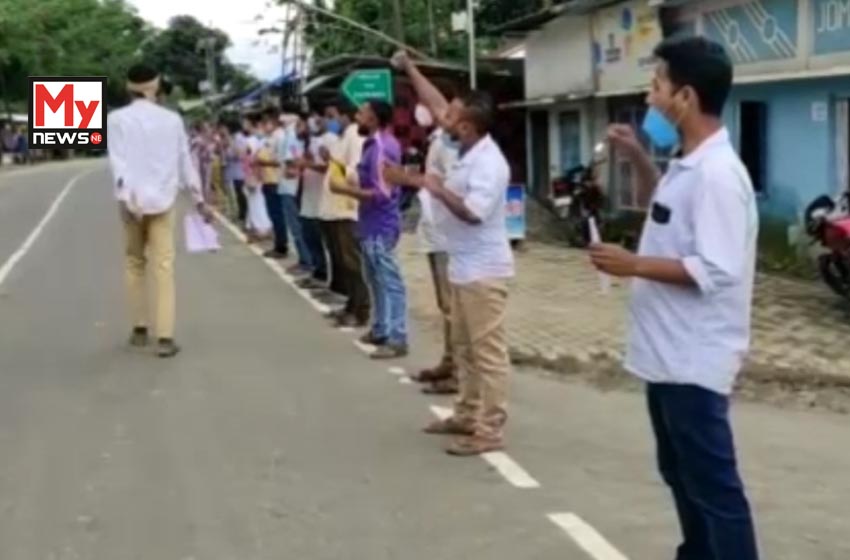 অখিল গগৈৰ মুক্তিৰ দাবীত মানৱ শৃংখল