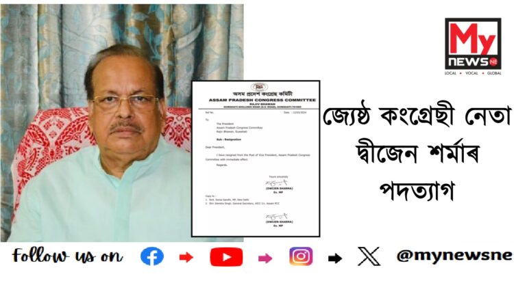 নিউজ ডেস্ক, ১২ মাৰ্চ : জ্যেষ্ঠ কংগ্ৰেছী নেতা দ্বীজেন শৰ্মাৰ পদ ত্যাগ ৷ APCCৰ সভাপতি ভূপেন বৰালৈ পদত্যাগ পত্ৰ প্ৰেৰণ শৰ্মাৰ(APCC Vice President Dwijen Sharma Resigns Ahead of Lok Sabha Polls)৷