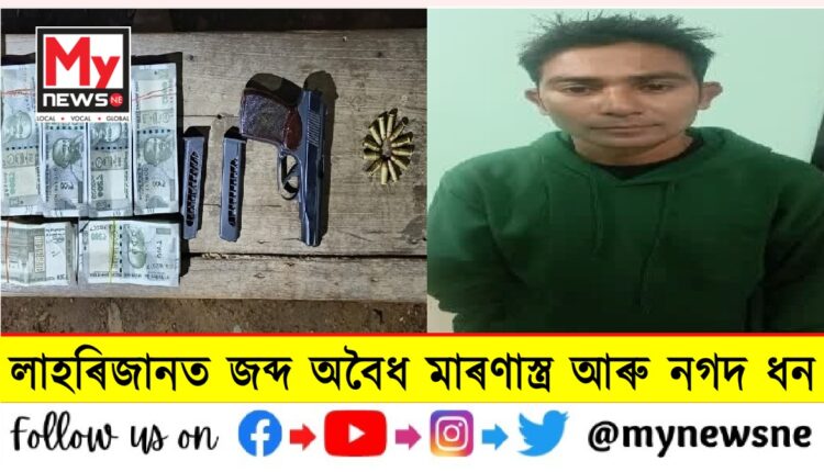 Arms Seized in Karbi Anglong : লাহৰিজানত জব্দ অবৈধ মাৰণাস্ত্ৰ আৰু নগদ ধন সহ এজন যুৱক