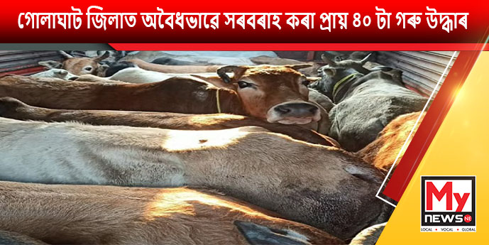 গোলাঘাট জিলাত অবৈধভাৱে সৰবৰাহ কৰা প্ৰায় ৪০ টা গৰু উদ্ধাৰ