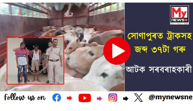এইবাৰ সোণাপুৰৰ নাজিৰাখাটত ৩৭টা গৰুসহ জব্দ এখন ট্ৰাক। আটক এজন চোৰাং বেপাৰী।
