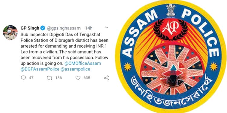 পুনৰ অসম আৰক্ষীত কলংকৰ দাগ By MyNewsNE Desk On Oct 6, 2020 Share পুনৰ অসম আৰক্ষীত কলংকৰ দাগ ধন দাবী কৰি গ্ৰেপ্তাৰ SI দ্বীপজ্যোতি দাস ডিব্ৰুগড় টেঙাখাত আৰক্ষী থানাত কৰ্মৰত দ্বীপজ্যোতি দাস এজন ব্যক্তিৰ পৰা ১ লাখ টকা উৎকোচ লৈছিল দ্বীপজ্যোতিৰ পৰা আৰক্ষী উদ্ধাৰ কৰে ধনখিনি Share FacebookTwitterReddItWhatsAppPinterestEmail