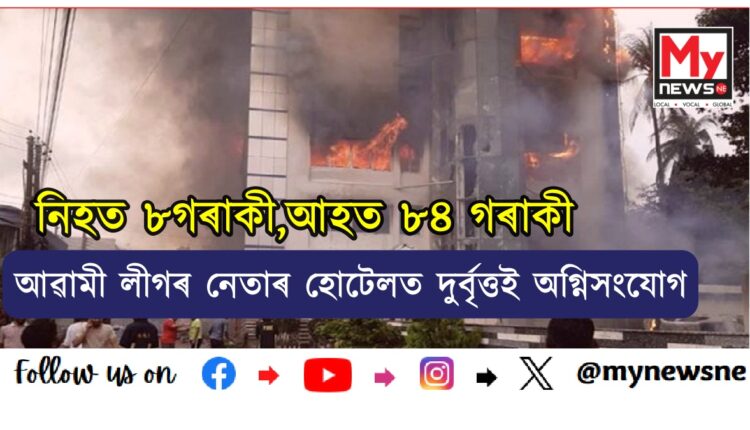 নিউজ ডেস্ক,৬আগষ্ট : ভয়ংকৰ পৰিস্থিতি বাংলাদেশৰ। প্ৰতিবাদকাৰীয়ে দেশখনত চলাই আছে ধ্বংসলীলা । ইয়াৰ মাজতে জেচোৰৰ এখন হোটেলত অগ্নিসংযোগ দুৰ্বৃত্তৰ । এই অগ্নিকাণ্ডত প্ৰায় ৮ গৰাকী লোক নিহত হয় আৰু ৮৪ গৰাকী লোক আহত হয়( At least 8 people killed, 84 others injured after hotel owned by Awami League leader) ।
