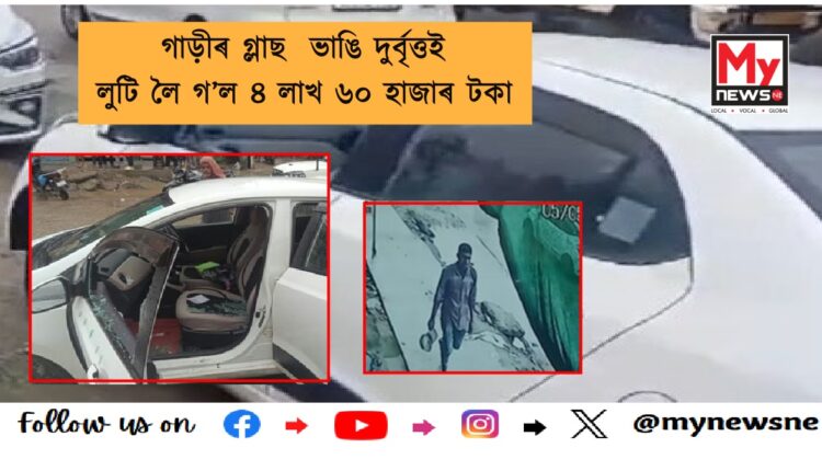 মঙলবাৰে ধেমাজি সদৰ আৰক্ষী থানাৰ পৰা মাত্ৰ পাচঁশ মিটাৰ দূৰত্বত অৱস্থিত ধেমাজি চাৰিআলিস্থিত জিলা পশু চিকিৎসা বিষয়াৰ কাৰ্যালয়ৰ সন্মুখৰ পৰা গাড়ীৰ গ্লাছ ভাঙি কোনো দুৰ্বৃত্তই লুটি লৈ গ’ল ৪ লাখ ৬০ হাজাৰ টকা ৷
