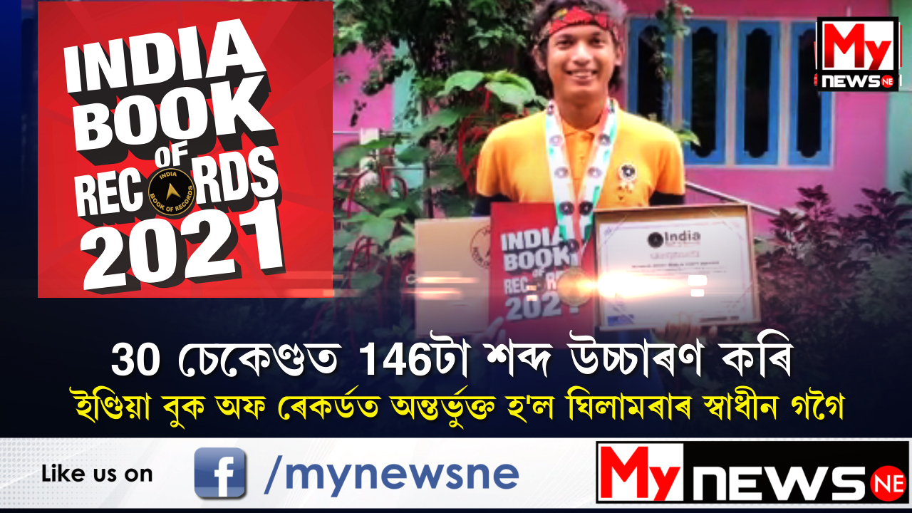 30 চেকেণ্ডত 146টা শব্দ উচ্চাৰণ কৰি ইণ্ডিয়া বুক অফ ৰেকৰ্ডত অন্তৰ্ভুক্ত হ’ল ঘিলামৰাৰ স্বাধীন গগৈ By MyNewsNE Desk On Jun 30, 2021 Share Share FacebookTwitterReddItWhatsAppPinterestEmail