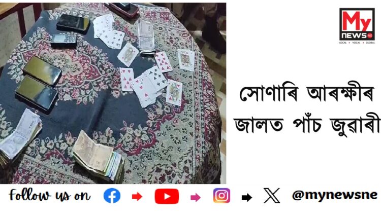 five gamblers arrested in sonari : সোণাৰি আৰক্ষীৰ জালত পাঁচ জুৱাৰী