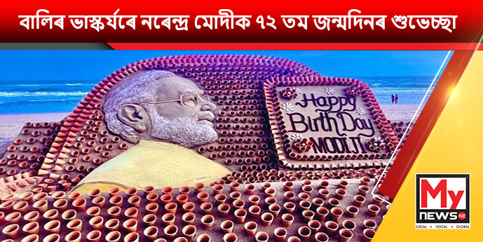বালিৰ ভাস্কৰ্যৰে নৰেন্দ্ৰ মোদীক ৭২ তম জন্মদিনৰ শুভেচ্ছা