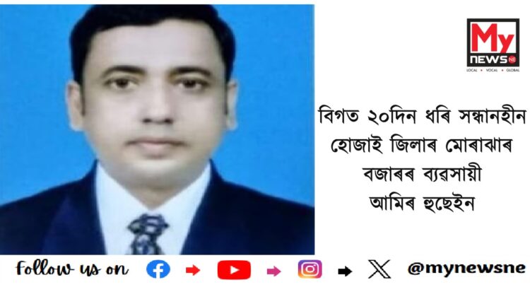 এই হোজাই জিলাৰ মোৰাঝাৰ বজাৰৰ ব্যৱসায়ী আমিৰ হুছেইন বিগত ২০দিন ধৰি সন্ধানহীন হৈ আছে ।