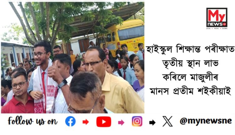 শনিবাৰে ঘোষিত হাইস্কুল শিক্ষান্ত পৰীক্ষাৰ ফলাফলত ৫ টা স্থানৰ ভিতৰত তৃতীয় স্থানত উজ্জ্বলিল মাজুলীৰ মানস প্ৰতীম শইকীয়াই । ৫৮৮ নম্বৰ লাভেৰে তৃতীয় স্থান দখল কৰিবলৈ সক্ষম হ’ল মাজুলীৰ কমলাবাৰীৰ আইলেণ্ড একাডেমীৰ মানস প্ৰতিম শইকীয়াই(HSLC exam result 2024)।
