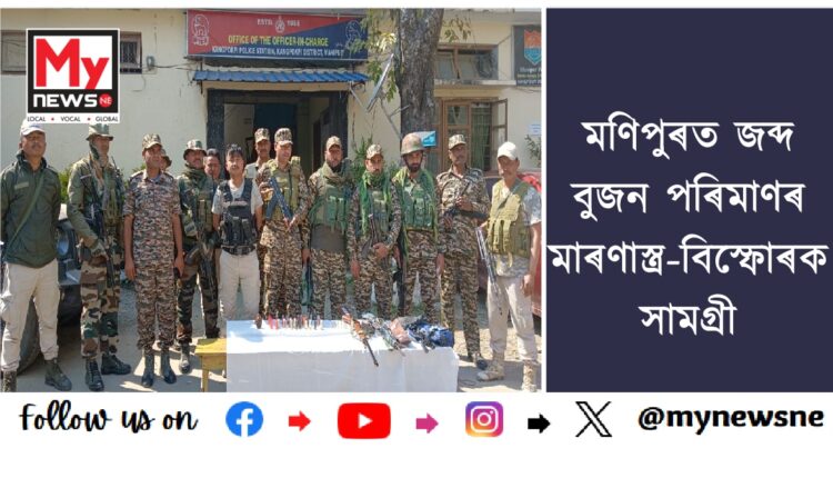 নিউজ ডেস্ক, ১০ মাৰ্চ : পুনৰ চুবুৰীয়া ৰাজ্য মণিপুৰত জব্দ বুজন পৰিমাণৰ অবৈধ মাৰণাস্ত্ৰ(Huge weapons and Explosives Recovered) ।