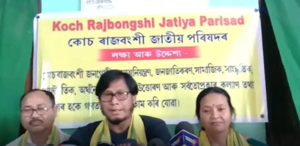 খবৰ অনুসৰি, নামনি অসম তথা বিটিএডি এলেকাৰ চিৰাং জিলাৰ বিজনী চহৰত অনুষ্ঠিত এক সংবাদমেলত কোচ ৰাজবংশী জাতীয় পৰিষদৰ কেন্দ্ৰীয় সভাপতি বিমল কুমাৰ বৰ্মন, সাধাৰণ সম্পাদক বিশ্বজিৎ ৰায়, সহকাৰী সম্পাদক জগন্নাথ ৰায় আৰু কেন্দ্ৰীয় সদস্য পূৰ্ণিমা বৰ্মনে বিজেপি দলৰ নেতৃত্বাধীন মিত্ৰজোঁটৰ কেন্দ্ৰীয় আৰু ৰাজ্যিক চৰকাৰৰ বিৰুদ্ধে তীব্ৰ ক্ষোভ আৰু উদ্বেগ প্ৰকাশ কৰে। অসমৰ ভূমিপুত্ৰ কোচ ৰাজবংশী জনগোষ্ঠীৰ লগতে ছয় জনগোষ্ঠীক জনজাতিকৰণৰ বিষয়টোক বৰ্তমান কেন্দ্ৰীয় তথা ৰাজ্য চৰকাৰে ধোঁৱা চাঙত তুলি জনগোষ্ঠী কেইটাৰ জাতীয় অনুভূতিত চৰম আঘাত আনিছে বুলি গুৰুতৰ অভিযোগ উত্থাপন কৰিছে। সংবাদমেলত সংগঠনটোৰ কেন্দ্ৰীয় সাধাৰণ সম্পাদক বিশ্বজিৎ ৰায়ে প্ৰকাশ কৰে যে কেন্দ্ৰীয় আৰু ৰাজ্য চৰকাৰে চলিত বাজেট অধিৱেশনত জনজাতিকৰণৰ বিধেয়ক উভয় সদনতে গৃহীত কৰি জনজাতিৰ মৰ্য্যদা দিয়াৰ লগতে ১৯৪৯ চনৰ ২৮ আগষ্ট তাৰিখে তদানীন্তন ভাৰত চৰকাৰ আৰু কোচ কমতাৰ মাজত সম্পাদিত মাৰ্জৰ চুক্তিৰ প্ৰতি সন্মান জনাই উক্ত প্ৰাপ্য অধিকাৰ ঘূৰাই অনাৰ দাবীত সংগঠনটোৱে অহা ২৩ মাৰ্চত বঙাইগাঁও জিলা সদৰ চহৰত তিনি ঘন্টীয়া ধৰ্মঘট আন্দোলনৰ আহ্বান জনাই।