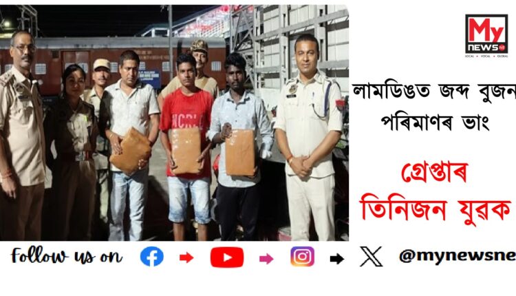 এক গোপন তথ্যৰ ভিত্তিত লামডিং আৰক্ষীয়ে অভিযান চলাই লামডিং ৰে’লৱে ষ্টেচনৰ সন্মুখৰ পাৰ্কিং এলেকাৰ পৰা গাঞ্জা সহ তিনিজন যুৱকক গ্ৰেপ্তাৰ কৰে(Large amount of narcotics seized)।