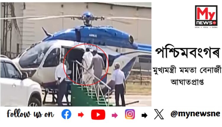 Mamata Banerjee slips and falls while boarding helicopter : পশ্চিমবংগৰ মুখ্যমন্ত্ৰী মমতা বেনাৰ্জী আঘাতপ্ৰাপ্ত