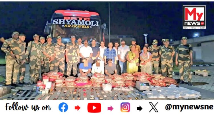 Meghalaya BSF seize contraband in Shillong-Dhaka bus at Dawki : যাত্ৰীবাহী বাছেৰে চোৰাং সামগ্ৰী সৰবৰাহৰ চেষ্টা একাংশ চোৰাং ব্যৱসায়ীৰ