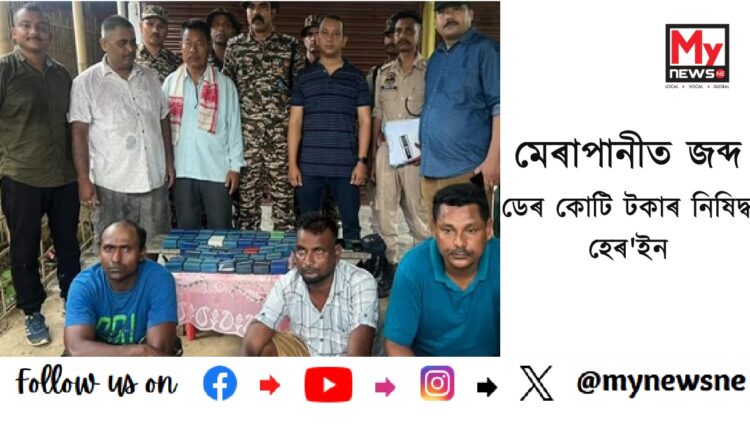 Narcotics worth crores seized in Merapani : মেৰাপানীত জব্দ ডেৰ কোটি টকা মূল্যৰ নিষিদ্ধ হেৰ’ইন, আটক তিনি সৰবৰাহকাৰী
