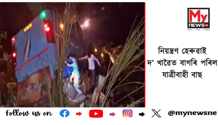 passengers hurt after bus falls into ditch : নিয়ন্ত্ৰণ হেৰুৱাই দ’ খাৱৈত বাগৰি পৰিল যাত্ৰীবাহী বাছ