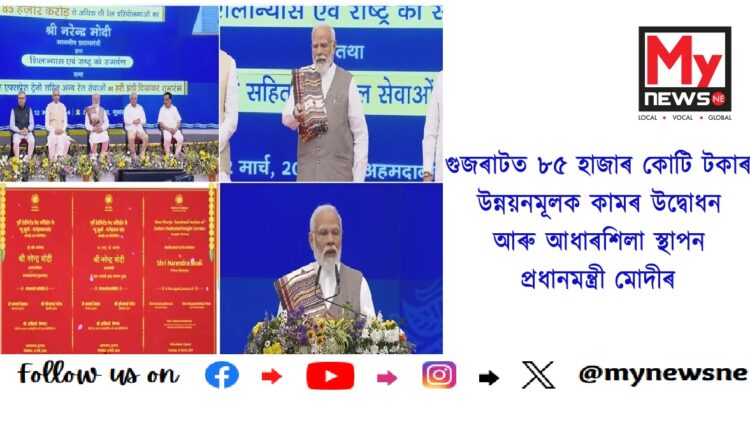 নেশ্যনেল ডেস্ক, ১২ মাৰ্চ : দেশবাসীৰ বাবে প্ৰধানমন্ত্ৰী বৃহৎ উপহাৰ । আজি প্ৰধানমন্ত্ৰী মোদীয়ে গুজৰাটৰ পৰা মুকলি কৰিলে ৮৫ হাজাৰ কোটি টকাৰ আধাৰশিলাৰ, উদ্বোধন কৰে উন্নয়নমূলক কামৰ । মুকলি কৰে ১০ খন নতুন ‘বন্দে ভাৰত’ ৰে’ল(PM Modi inaugurates and lays foundation stone of Rs 85,000 crore railway projects) ।