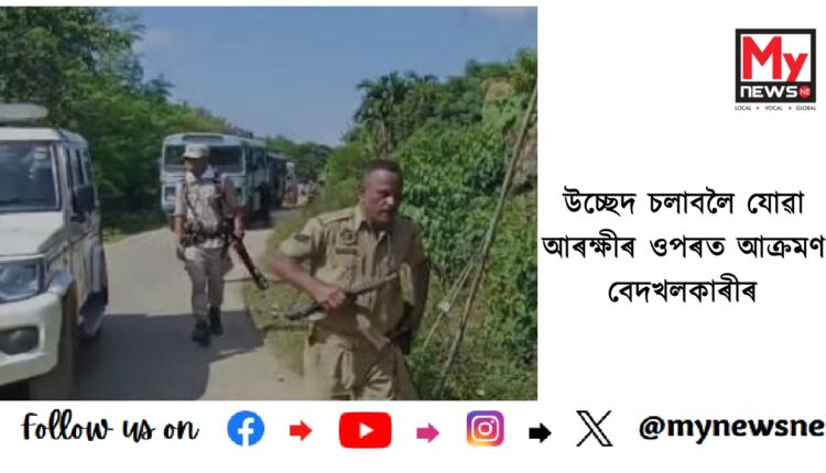 উচ্ছেদ চলাবলৈ যোৱা আৰক্ষীৰ গাড়ীলৈ শিলগুটি নিক্ষেপ বেদখলকাৰীৰ। হাতে-হাতে দা-লাঠী লৈ ওলাই আহিল বেদখলকাৰী। পৰিস্থিতি নিয়ন্ত্ৰণৰ বাবে শূন্যলৈ গুলীচালনা কৰিবলৈ বাধ্য হয় আৰক্ষীয়ে।