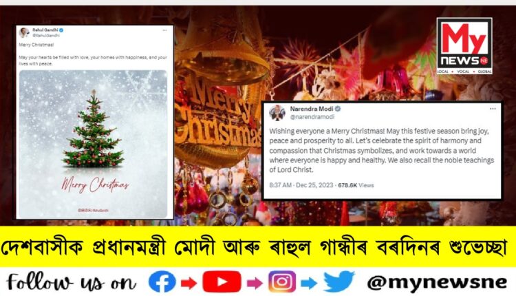 আজি খ্ৰীষ্টানধৰ্মী লোকসকলক পবিত্ৰ বৰদিনৰ শুভেচ্ছা জ্ঞাপন কৰিছে দেশৰ প্ৰধানমন্ত্ৰী নৰেন্দ্ৰ মোদী আৰু কংগ্ৰেছ নেতা ৰাহুল গান্ধীয়ে(Prime Minister Narendra Modi and Congress leader Rahul Gandhi extends Christmas greetings to the people)।