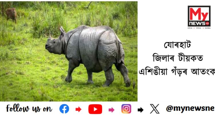 Rhino roaming freely in Jorhat : যোৰহাট জিলাৰ টীয়কত এশিঙীয়া গঁড়ৰ আতংক
