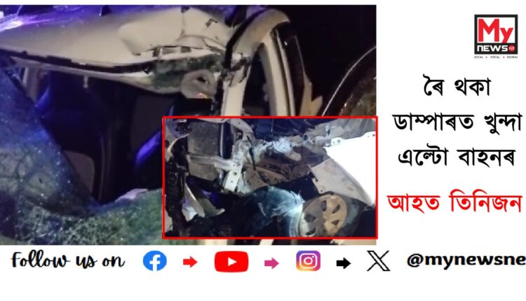কৰিমগঞ্জ,১৫জুলাই : ডাম্পাৰত খুন্দা এল্টো বাহনৰ । আহত তিনিজন ।