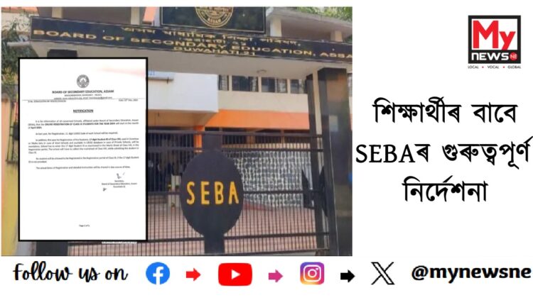 নিউজ ডেস্ক, ১৬ মাৰ্চ : SEBAৰ গুৰুত্বপূৰ্ণ নিৰ্দেশনা। লাখ লাখ শিক্ষাৰ্থীৰ বাবে SEBAৰ গুৰুত্বপূৰ্ণ নিৰ্দেশনা ।