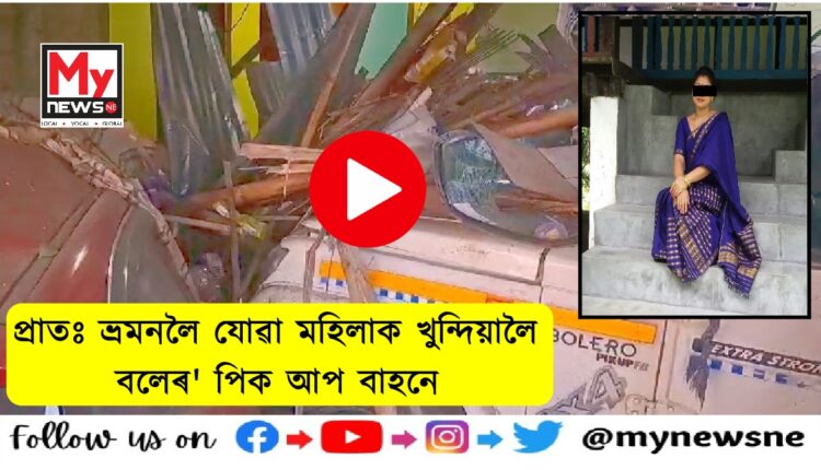 Speeding Pickup Truck Claims Life Of Woman : প্ৰাতঃ ভ্ৰমনলৈ যোৱা মহিলাক খুন্দিয়ালৈ বলেৰ পিক আপ বাহনে ; নিহত মহিলা