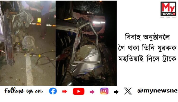 Terrible road accident in Uttar Pradesh : বিবাহ অনুষ্ঠানলৈ গৈ থকা তিনি যুৱকক মহতিয়াই নিলে ট্ৰাকে