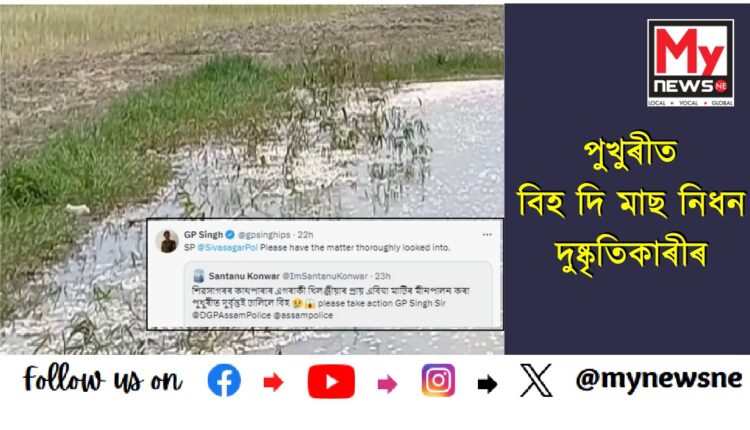 Thousands of fish were killed by poisoning in the pond :পুখুৰীত বিহ দি মাছ নিধন দুষ্কৃতিকাৰীৰ