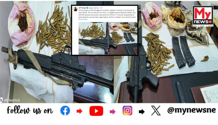 বিস্ফোৰকখিনি কোনো নিষিদ্ধ সংগঠনৰ বুলি সন্দেহ আৰক্ষীৰ। সামাজিক মাধ্যমযোগে এই কথা জনালে DGP জি পি সিঙে৯Tinsukia Police recover arms, ammunition )।