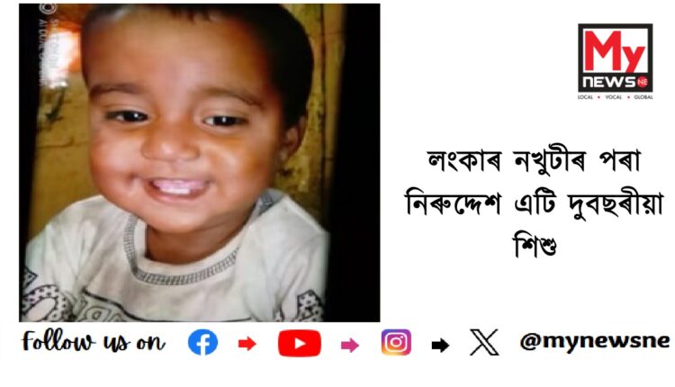 এইবাৰ লংকাৰ নখুটী জানজুৰ পৰা নিৰুদ্দেশ এটি দুবছৰীয়া শিশু। যোৱা ২০ চেপ্তেম্বৰ বিয়লি ৫ মান বজাৰ পৰাই নিৰুদ্দেশ শিশুটি(Two-year-old boy goes missing from Lanka)।